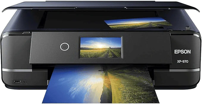 Uma das melhores impressoras para fotografia para quem busca custo-benefício é a Epson Expression Photo XP-970. Por ser um modelo multifuncional de jato de tinta orientada para fotografia doméstica/prosumidor com boa qualidade em papéis fotográficos, sua impressão não possui bordas e os recursos de scanner/copiar funcionam muito bem. Traz bom equilíbrio entre preço, tamanho e qualidade para entusiastas.